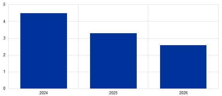 Notes: Averages of contacts’ perceptions of wage growth in their sector in 2024 and their expectations for 2025 and 2026. The averages for 2024, 2025 and 2026 are based on indications provided by 61, 66 and 61 respondents respectively.