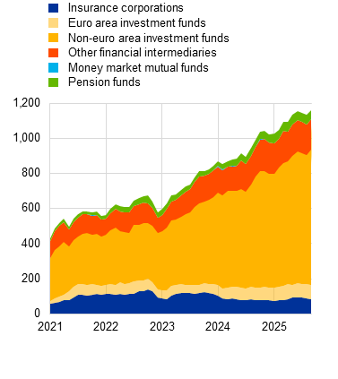 Some other NBFI entities provide stable long-term bond funding to euro area banks. As of June 2025, euro area NBFI entities held approximately one-third of outstanding euro area bank bonds, amounting to around €1.5 trillion. Insurance corporations and pension funds are a prominent class of investor in bank bonds, as they need to take duration risk to reduce their asset-liability mismatches. With long maturities spaced out over time, the liquidity risk associated with such funding is limited. However, a protracted loss of access to bond funding may also make it difficult for banks to comply with regulatory requirements such as the minimum requirement for own funds and eligible liabilities.