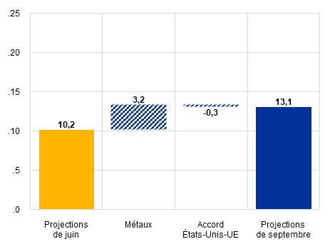Hypothèses relatives aux taux effectifs des droits de douane américains sur les biens dans les projections de septembre 2025 par rapport aux projections de juin 2025
