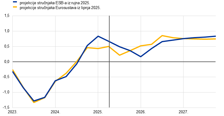 projekcije stručnjaka ESB‑a | rujan 2025. | 1,2 | 1,0 | 1,3 | 2,1 | 1,7 | 1,9 | 2,4 | 1,9 | 1,8 |