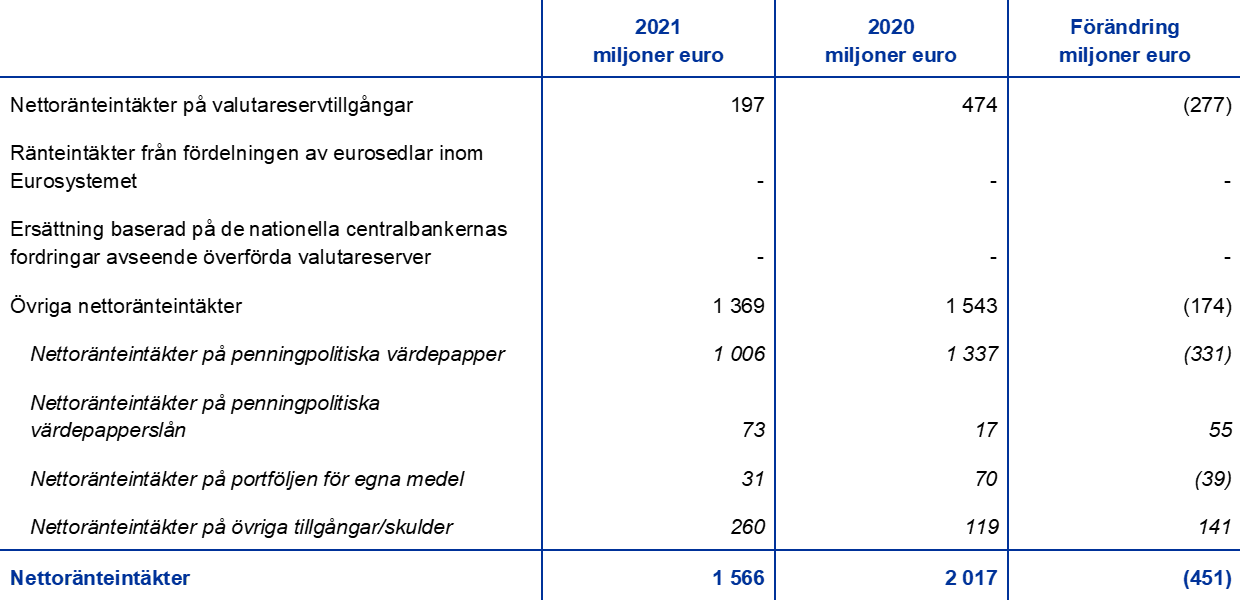 Nettoränteintäkter på värdepapper som innehas i penningpolitiska syften