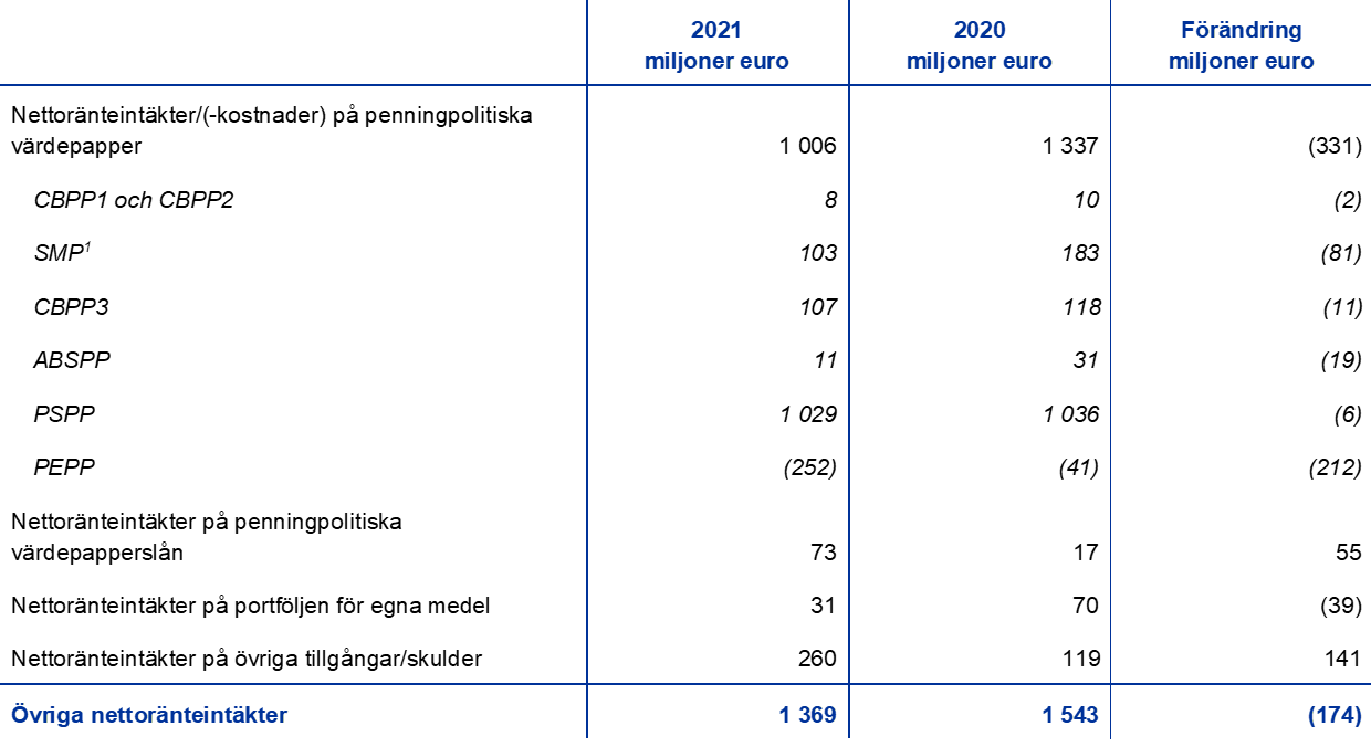 Under 2021 genererade värdepappersinnehav i penningpolitiska syften 64 procent av ECB:s nettoränteintäkter.