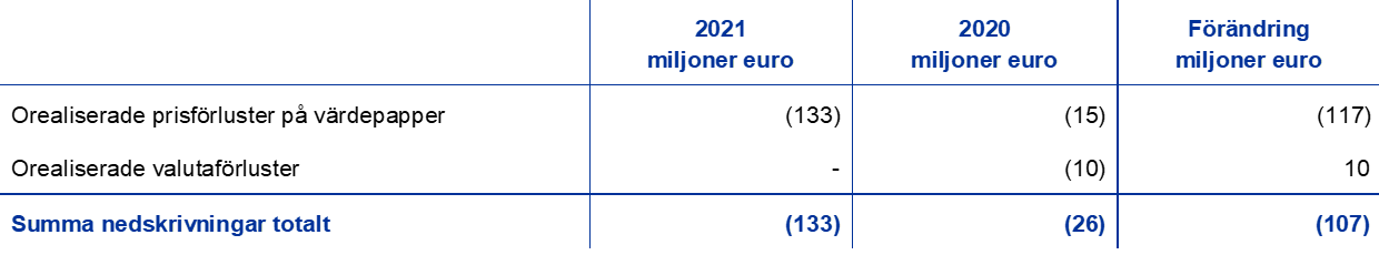 - Den ökade avsättningen för finansiella risker resulterade i att vinsten för 2021 minskade med motsvarande belopp.