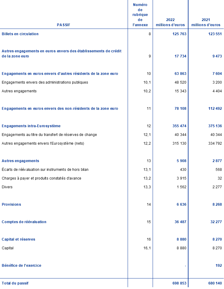 Cette annexe ne fait pas partie des états financiers de la BCE pour l’année 2022.