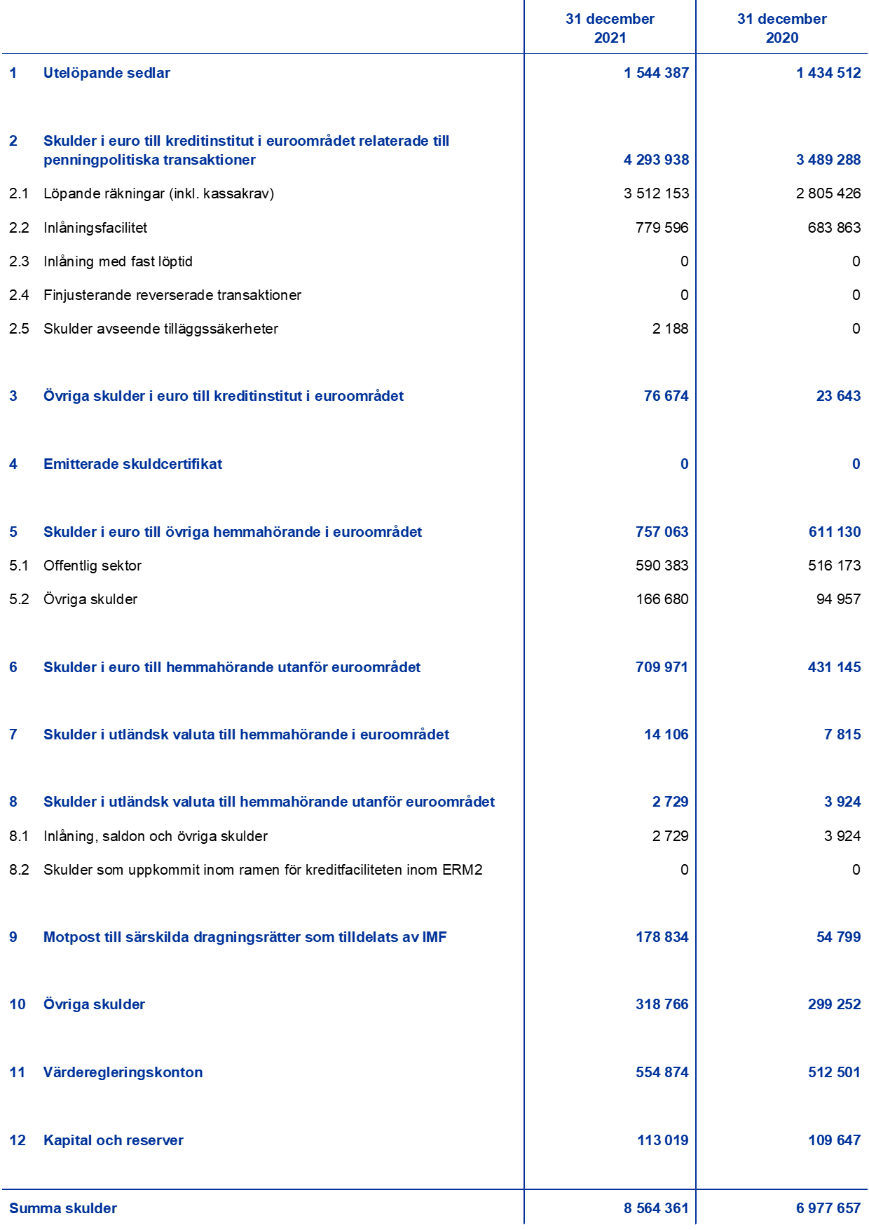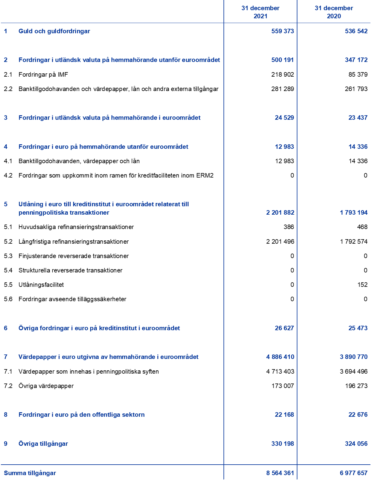 Eurosystemets konsoliderade balansräkning per den 31 december 2021