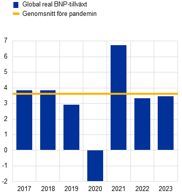 I Eurosystemets makroekonomiska prognoser från december 2022 beräknades den globala tillväxten bromsa in till 2,6 procent 2023.
