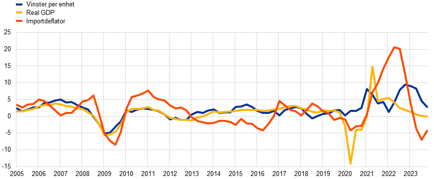 Källor: Eurosystemets makroekonomiska prognoser för euroområdet, december 2023 och ECB:s beräkningar.