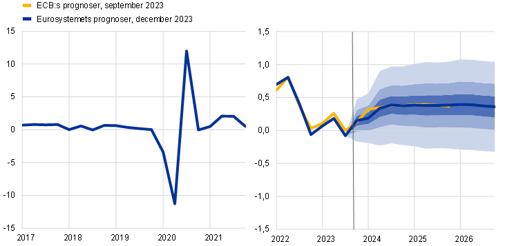 Prognoser av Eurosystemets experter | December 2023 | 0,8 | 1,5 | 1,5 | 2,7 | 2,1 | 1,9 |
