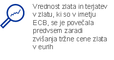 (lestvica na levi strani: milijarde EUR; lestvica na desni strani: EUR za unčo zlata)